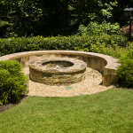 - Outdoor kitchen and bar for friends and families. Stone fire pit and seat wall.